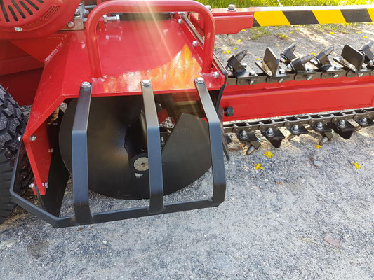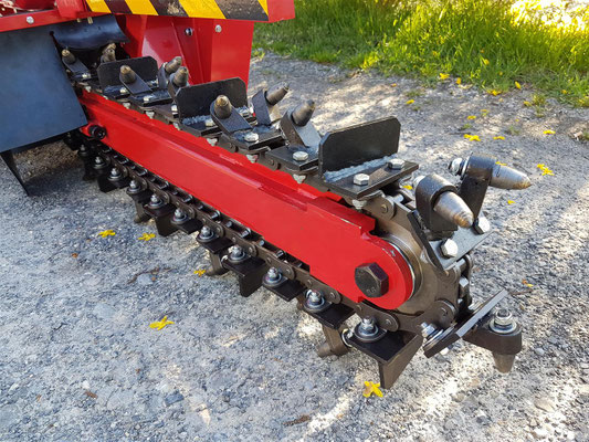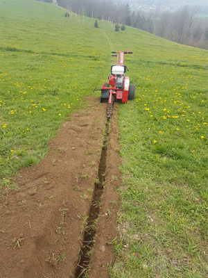 und kann Gräben von bis zu 60cm Tiefe und 10cm Breite ausfräsen.