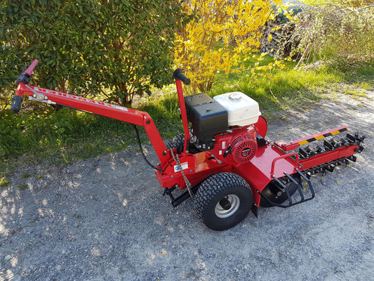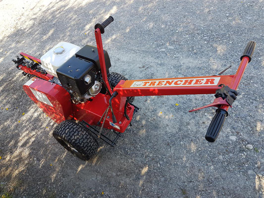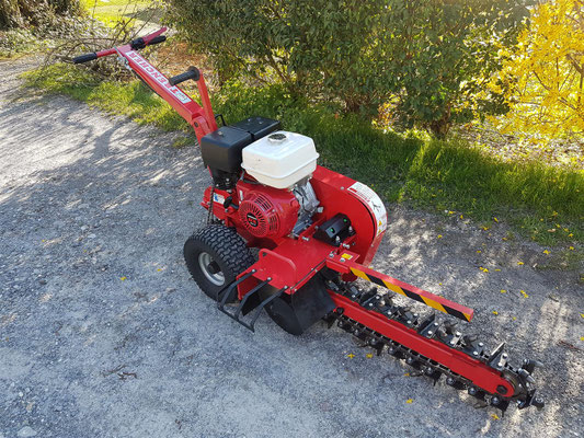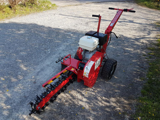 "ACHTUNG" Diese kleine Grabenfräse hat keinen Radantrieb und muss im Einsatz manuell nach hinten gezogen werden.
