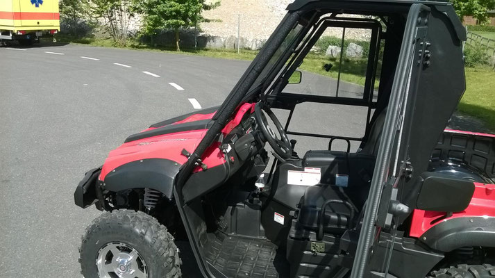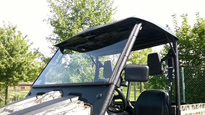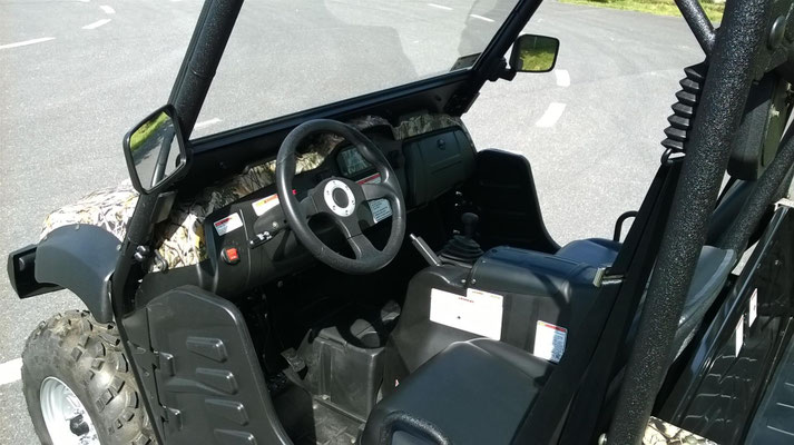 Für Stabilität und Sicherheit sorgt der einteilige, robuste Rahmen inkl. Überschlagschutz mit Dach. Zur Ausstattung gehören nicht nur übersichtliche Bedienelemente sondern auch zusätzlicher Stauraum durch ein Handschuhfach. Ein 12 V-Anschluss ermöglicht die Anbindung eines Ladegerätes, Notebooks oder Mobiltelefon. Zusätzlich ist jedes Kleinmotorfahrzeug mit einer 1000Kg, Seilwinde ausgerüstet.