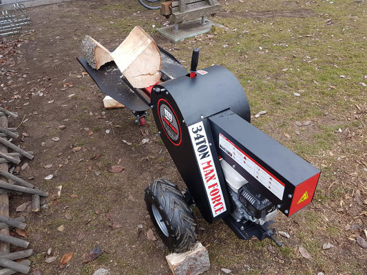 Baumstämme bis zu 610mm Länge und bis zu 500 mm Durchmesser sind kein Problem. Die Spaltkraft erreicht beim Aufschlag des Spaltstempels bis zu 34 Tonnen. Der robuste mechanische