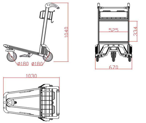 - Durch runterdrücken des Handgriffs werden die Bremsen gelöst.